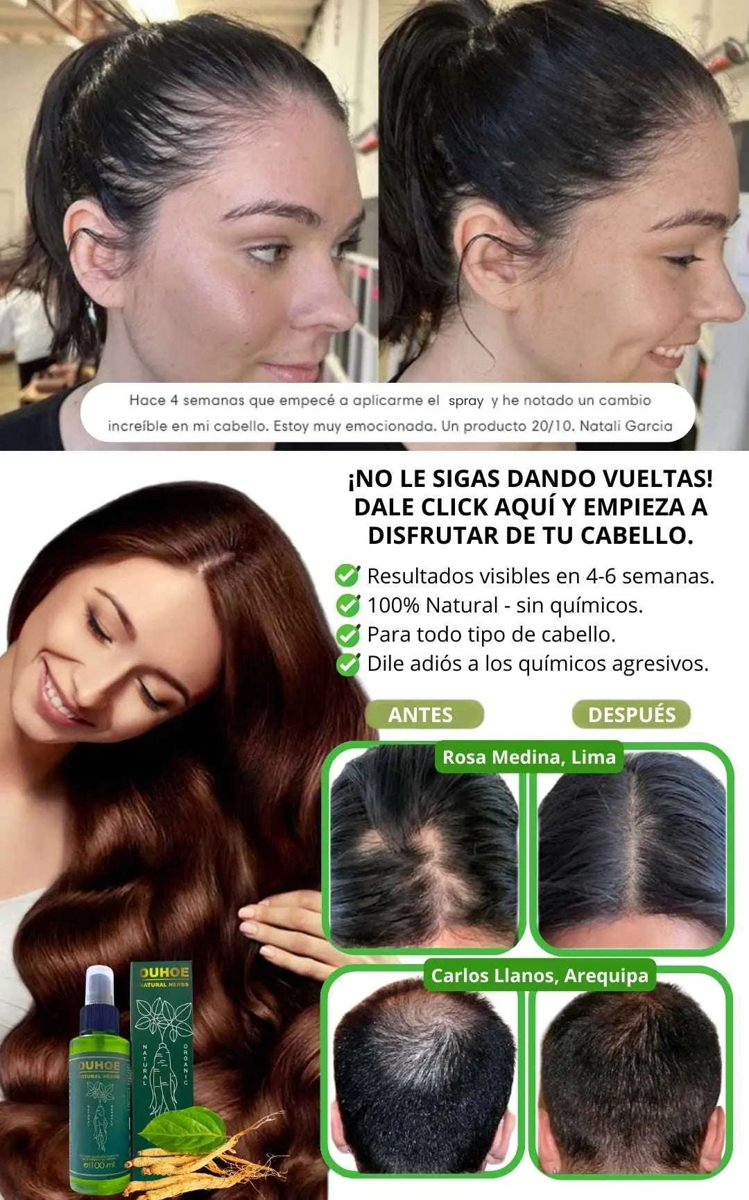 Personas reales que han transformado su cabellera con nuestro Elixir OUHOE.